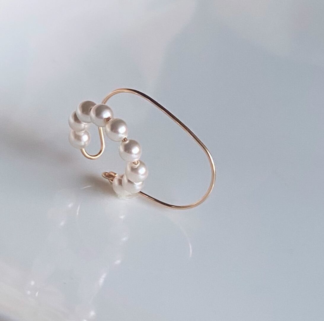 4ミリパールの連なるイヤーカフ2連でつけているように見えるイヤカフです。
