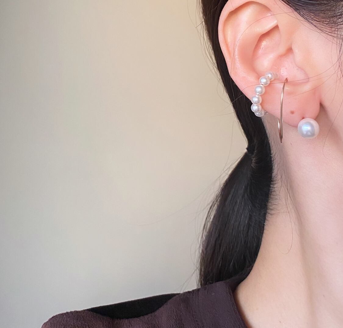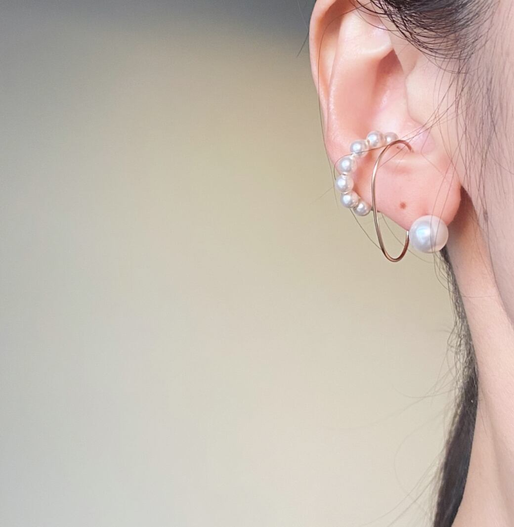 サッとお召し頂くだけで、顔まわりが華やかに仕上がるパールのイヤーカフ。