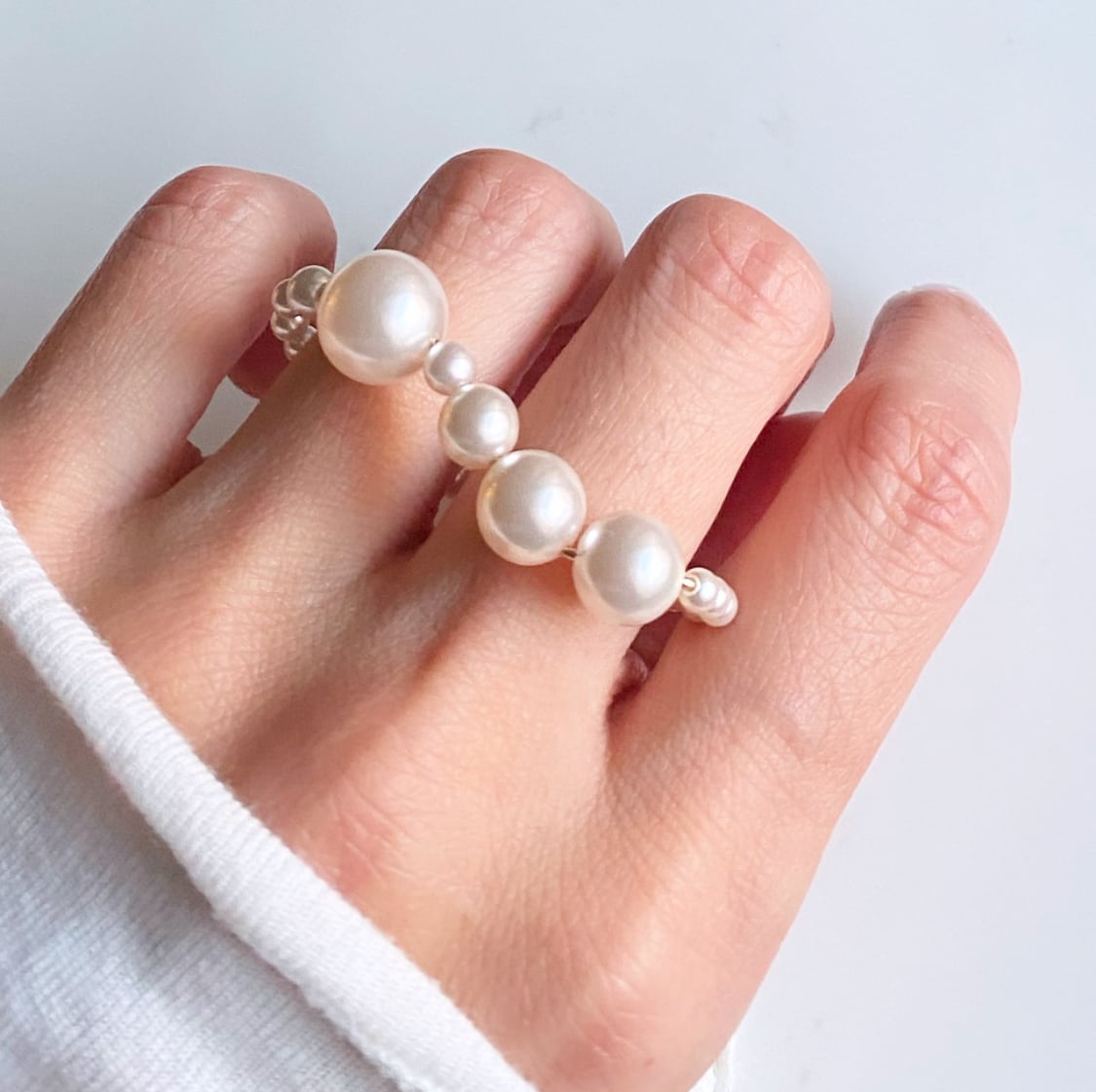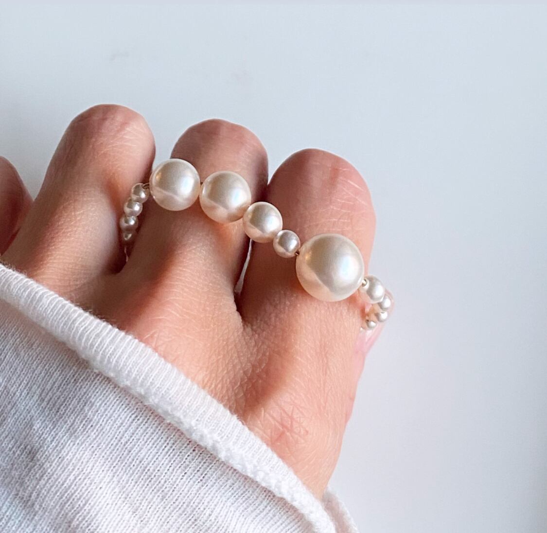 Sparkling pearl パール リング ダブルリング クリスタルパール