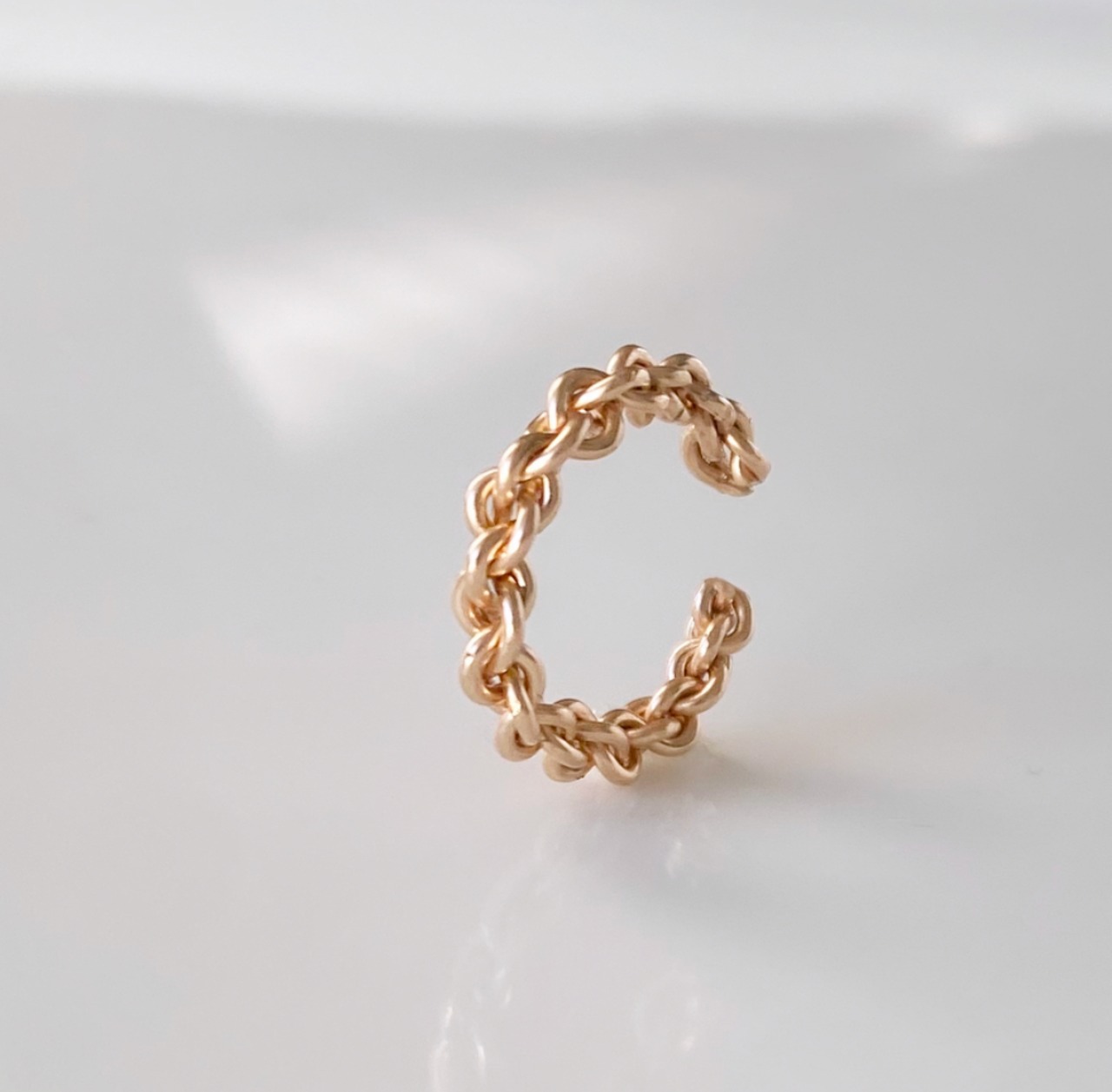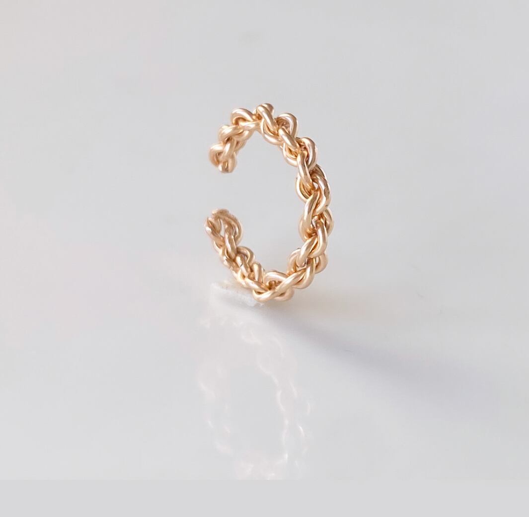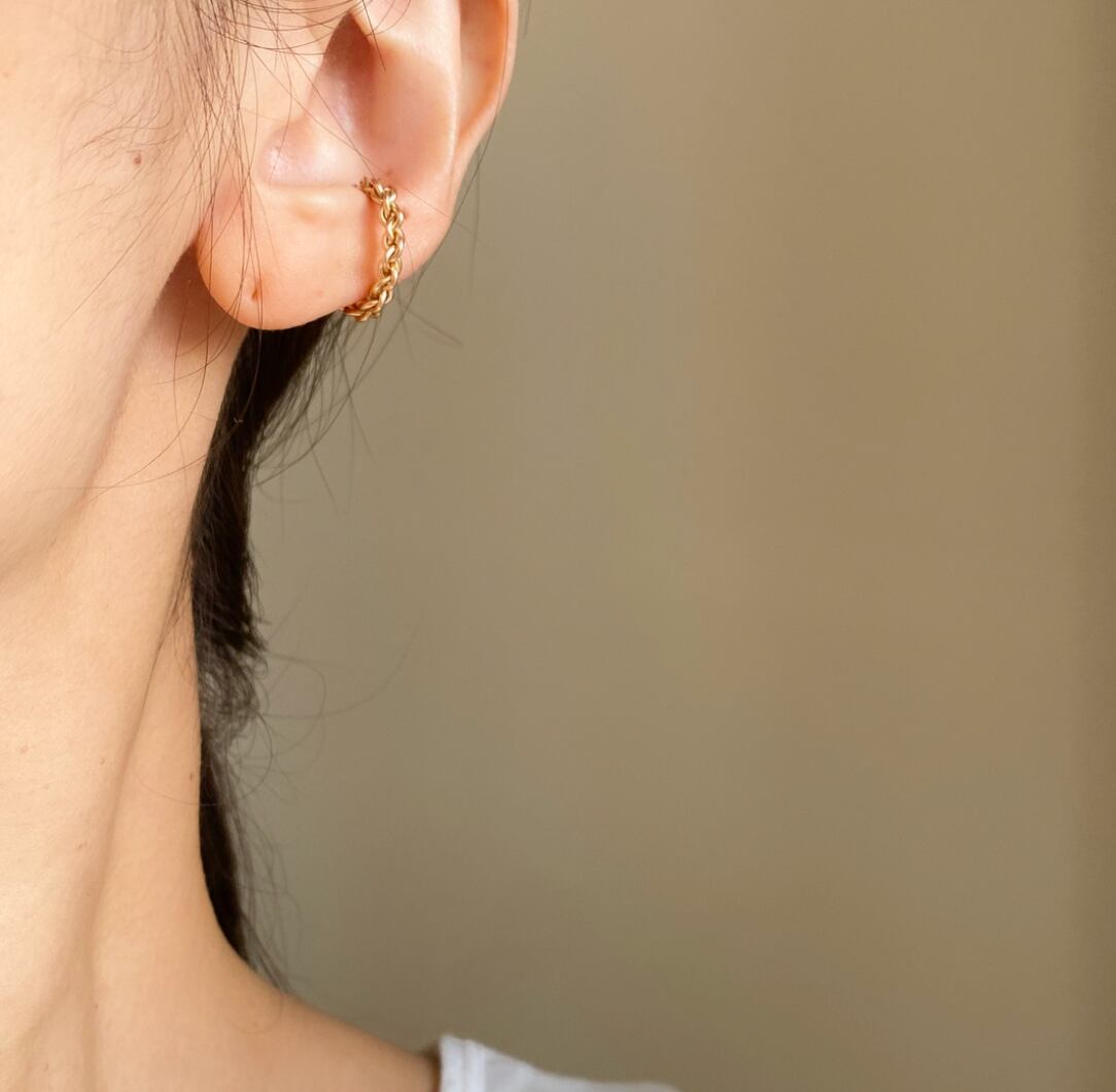 ゴールドのラインが編み込まれているようなイヤーカフ。