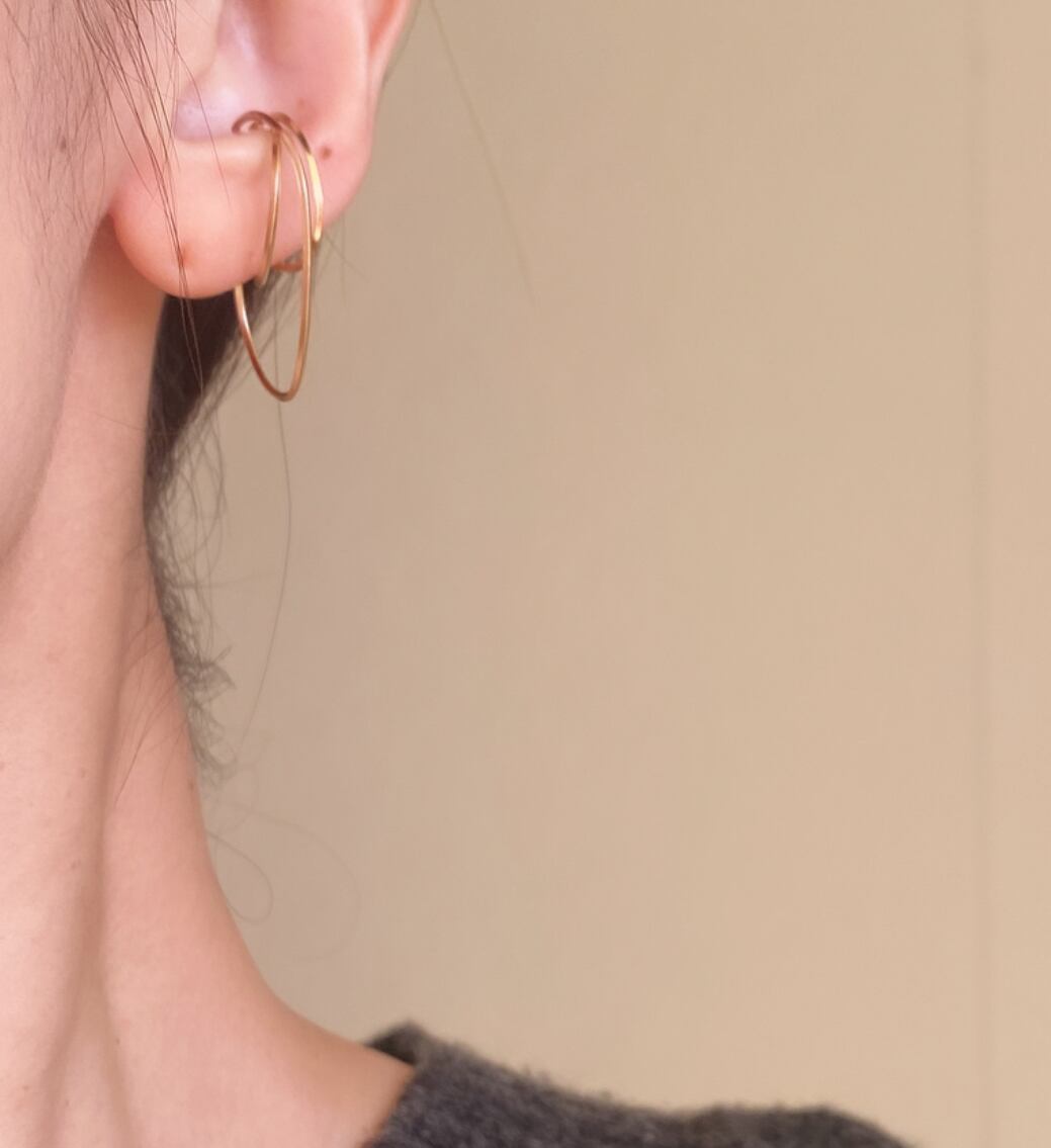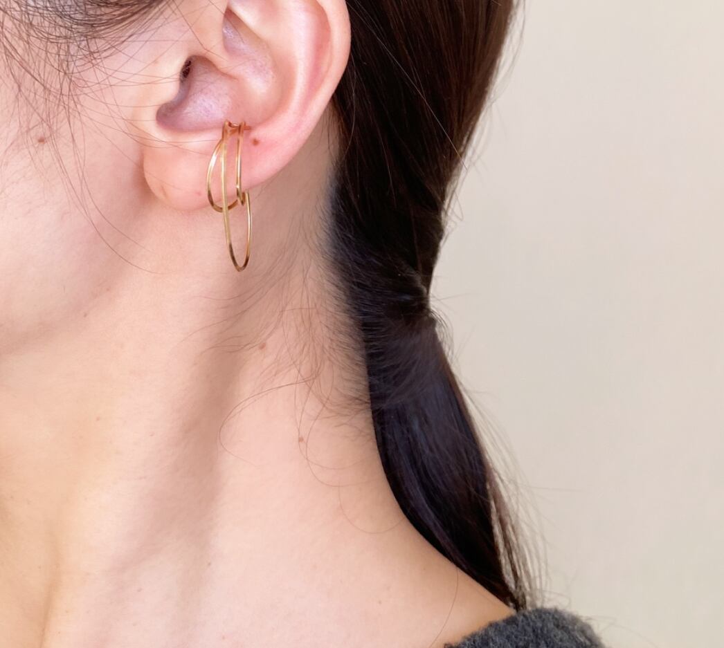 ご好評いただいているdiagonalシリーズのオーバルフープとフープか重なるイヤーカフ。