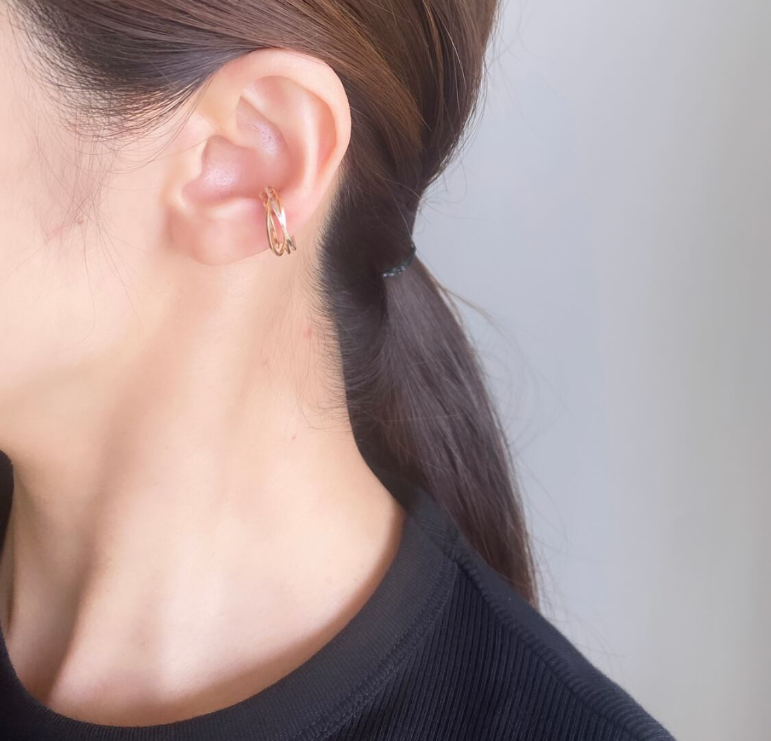 新作のオーバルのような縦長のラインを含む3連のイヤーカフの2点セット。